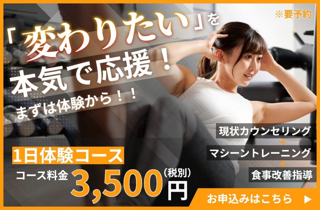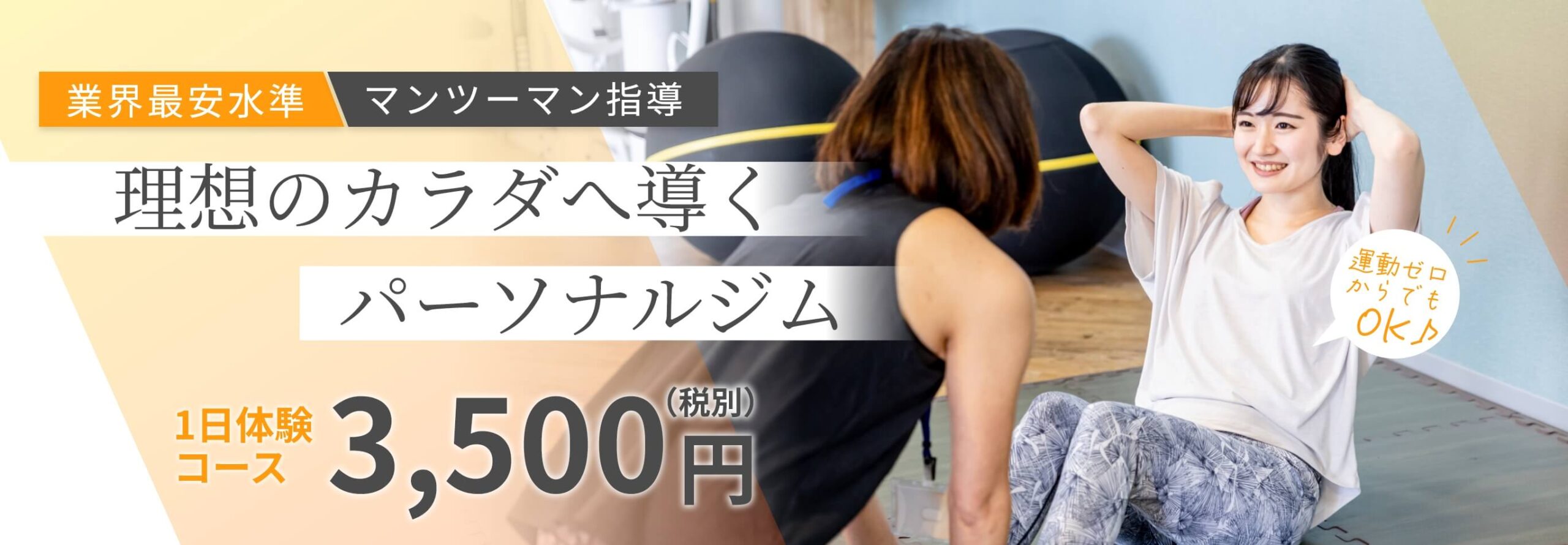 | 1日体験コース | 会員様にご利用いただいているサービス内容を1日(90分)体験いただけます。 | 1日(90分) | 3,500円 |